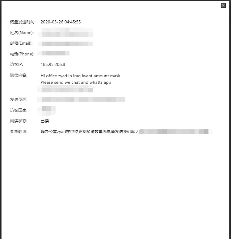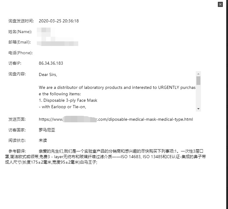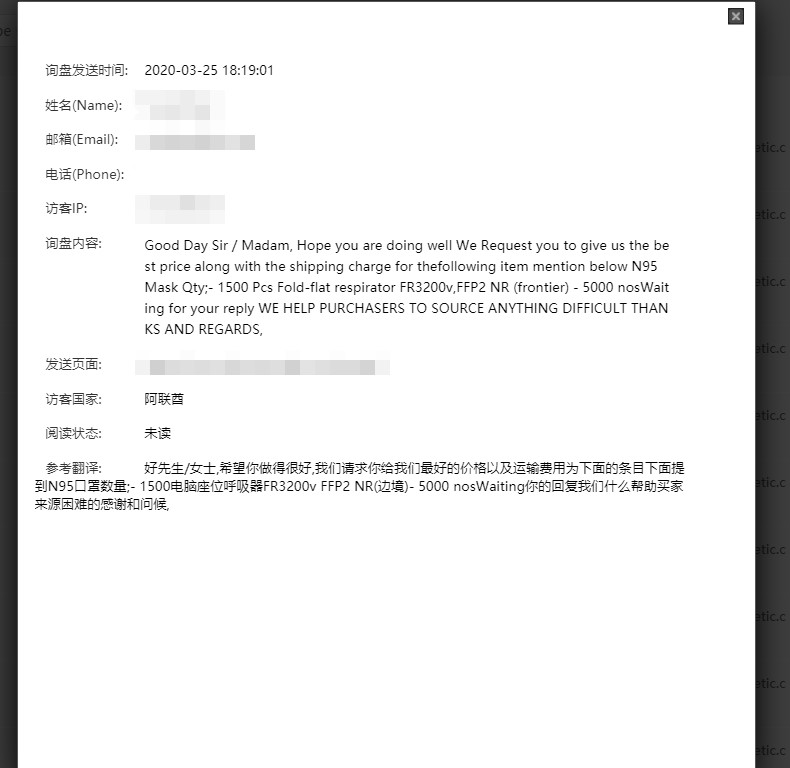 關(guān)于效果,我們可以明顯發(fā)現(xiàn),口罩等防疫用品上線推廣僅僅幾天時(shí)間,就開始陸續(xù)有詢盤進(jìn)來!