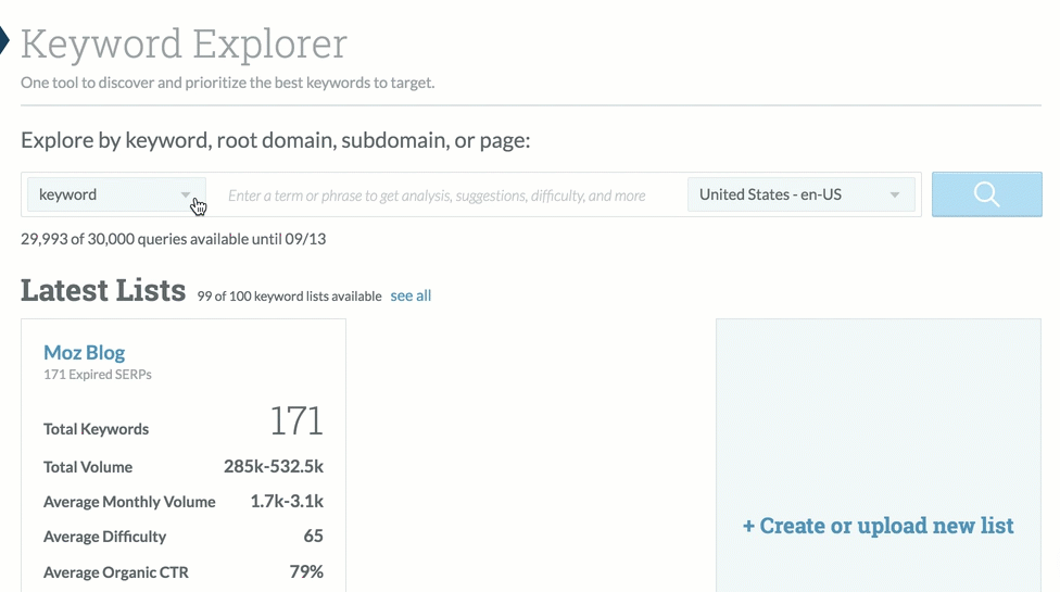 之前和大家分享了很多的工具,可以看看。(前往查看)這里再介紹另外一個關(guān)鍵詞挖掘工具:Moz關(guān)鍵詞資源管理器: