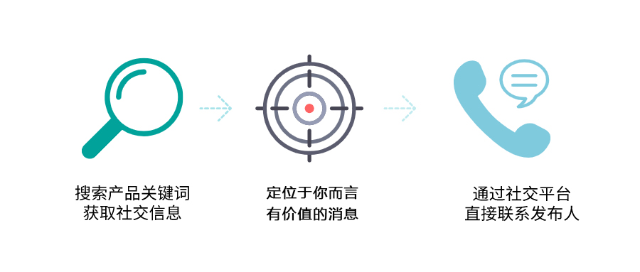 AI社交詢盤功能,整合了Facebook、YouTube、LinkedIn上的社交信息,使用該功能的用戶,只需要輸入自己企業(yè)的產(chǎn)品關(guān)鍵詞,就可以得到社交平臺(tái)上的產(chǎn)品采購(gòu)資訊內(nèi)容,可以直接利用社交平臺(tái)與采購(gòu)商發(fā)起會(huì)話,讓你的主動(dòng)開發(fā)更即時(shí)!