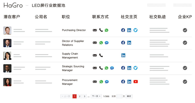 通過HaGro,潛在客戶的基本信息、聯(lián)系電話、郵箱地址、主流社交平臺(tái)賬號(hào)信息一覽無余。企業(yè)在獲取潛在客戶的信息之后,深挖客戶價(jià)值,做到精準(zhǔn)營(yíng)銷。