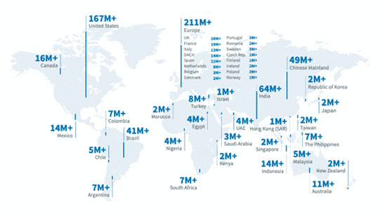 基于LinkedIn龐大的用戶群,LinkedIn成為外貿(mào)企業(yè)開拓國外市場的重要途徑。與其他社交平臺不同,領英把“職場社交”發(fā)揮到極致。LinkedIn呈現(xiàn)了來自不同地域不同企業(yè)不同職位的職場人士,他們通過LinkedIn展示出自己的職業(yè)形象,獲取商業(yè)洞察,拓展職業(yè)人脈,為自己的職場制造更多的機遇。