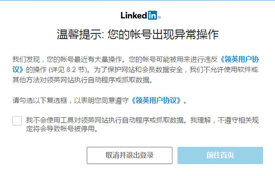 LinkedIn的限制導致領英賬戶無法正常使用: